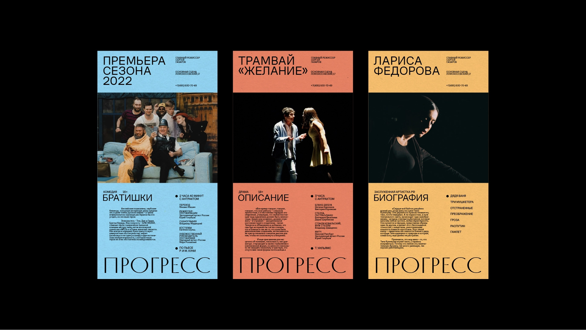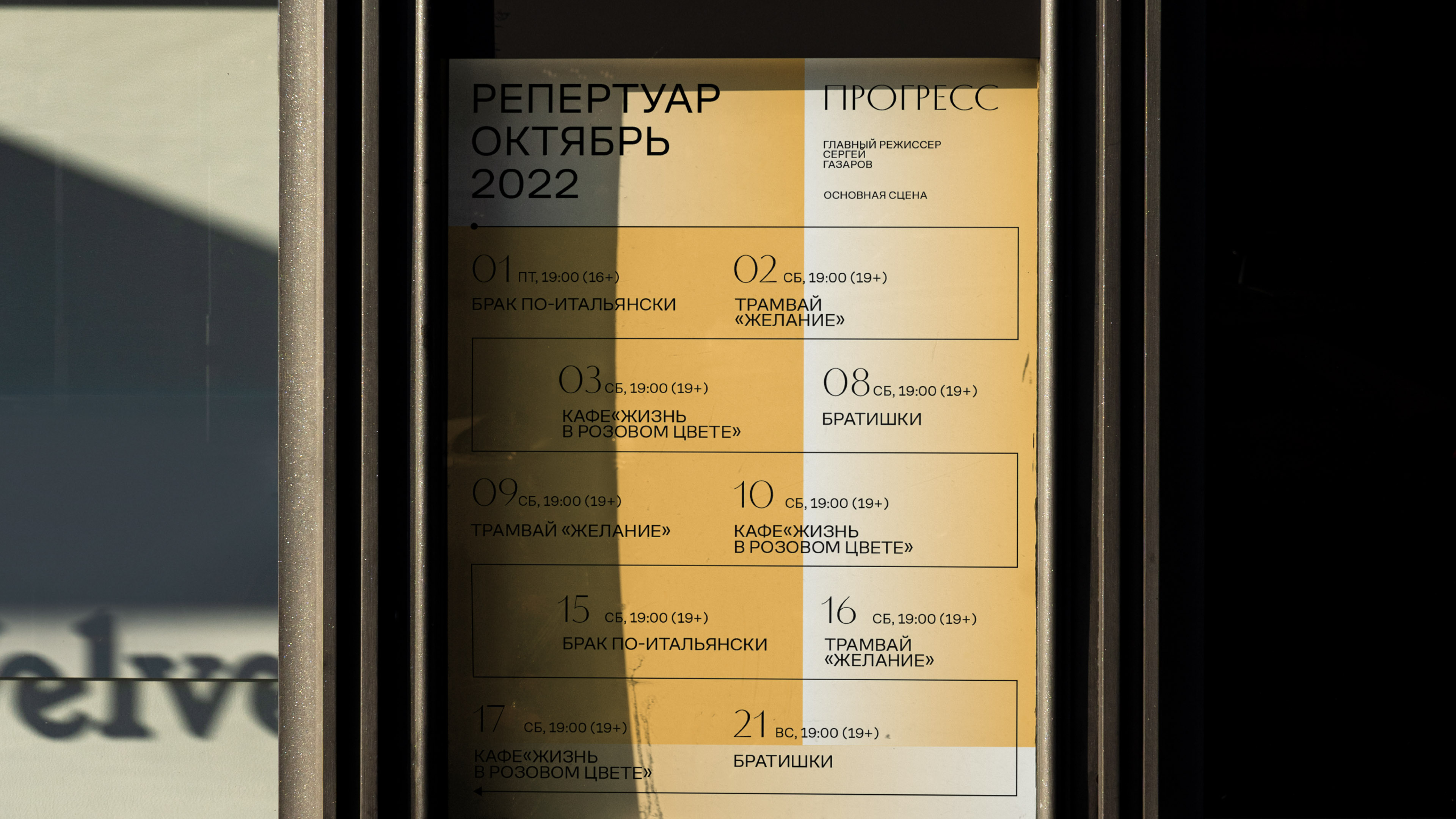 由于決定讓劇院恢復昔日的名字,圖形的設計旨在保持懷舊的感覺,但同時具有現代清新的色彩和技術細節。 進步是關于可制造性和前進的,但如果沒有一個人的參與和他改變世界變得更美好的真誠意圖,進步也是不可能的。 因此,這些圖形結合了技術美學和受蘇聯海報金屬質感啟發的暖色漸變。