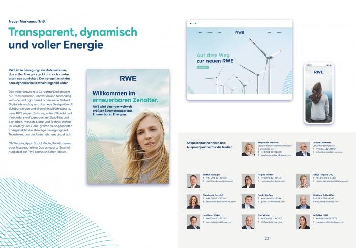 新的LOGO設計繼續由三個大寫字母RWE組成--然而,字母的邊緣已經四舍五入。公司的顏色已經擴展到包括綠色和灰色。新的公司字體被稱為新的公司字體,是為了確保一個獨特的品牌外觀。RWESANS聯合王國和聯合王國的情況就是如此。RWEText替換。作為一種新的設計元素,公司使用了兩種疊加和不斷變化的線條結構。